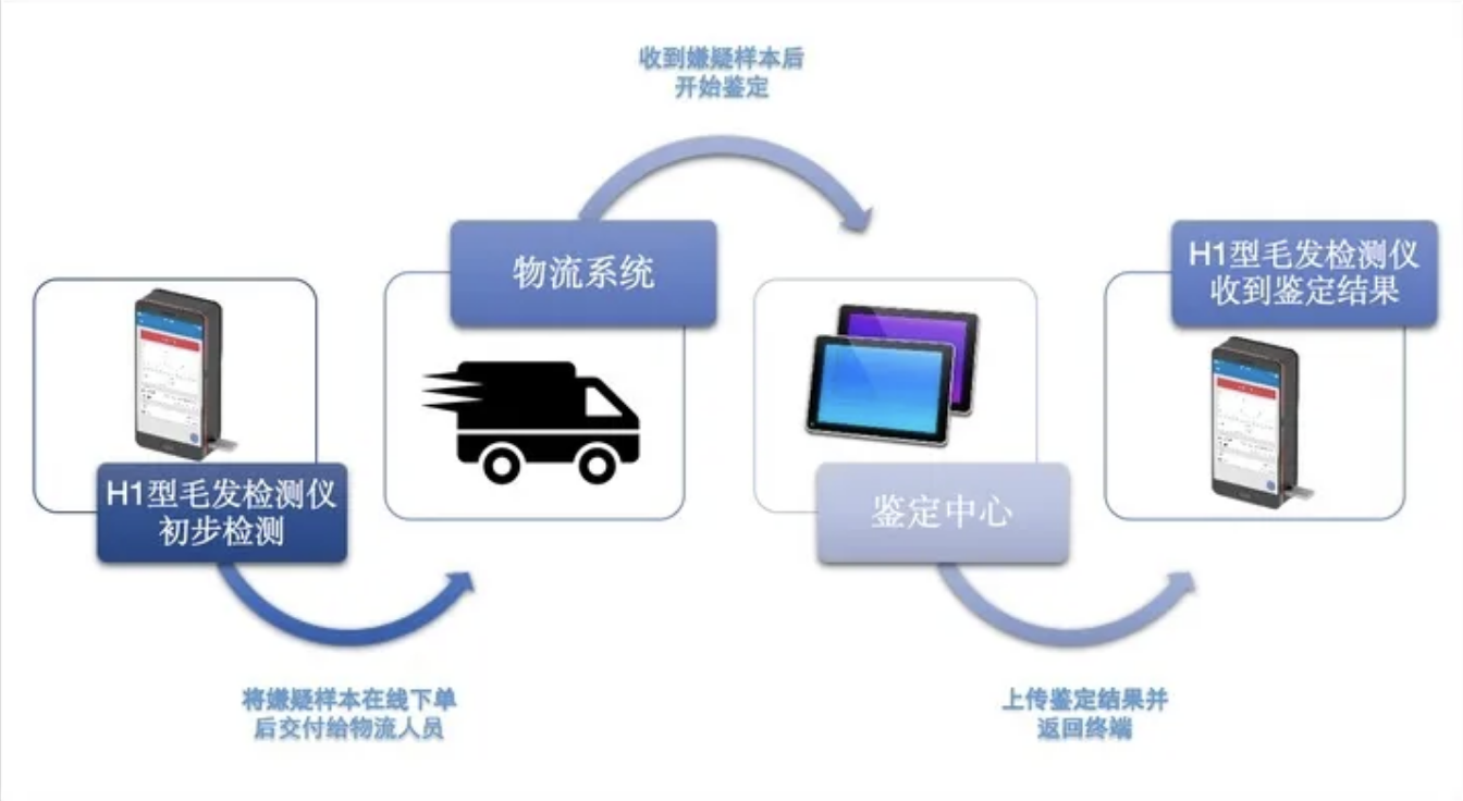 Fujian’s anti-drug IoT big data platform was the first implemented by provincial anti-drug authoritiesInternet of Things (IoT),Artificial intelligence,Cloud computing,Blockchain and other technologiesApplied inHair drug testing field.Platform developed by"Anti-Drug Internet of Things"One center,"Device terminals,Forensic identification institutions"Two anchor points,"Logistics,Payment,Regulatory system"Three supporting pillars.Results from IoT terminals securely transmitted to platform via encrypted network,The platform intelligently assigns positive results to nearby qualified testing and forensic institutions,The platform automatically notifies logistics personnel to collect samples from terminals and deliver them to forensic laboratories,Self-service real-time upload of identification results to the platform,Frontline users instantly receive identification results via terminals,Prevents repeated sampling of users within same timeframe.