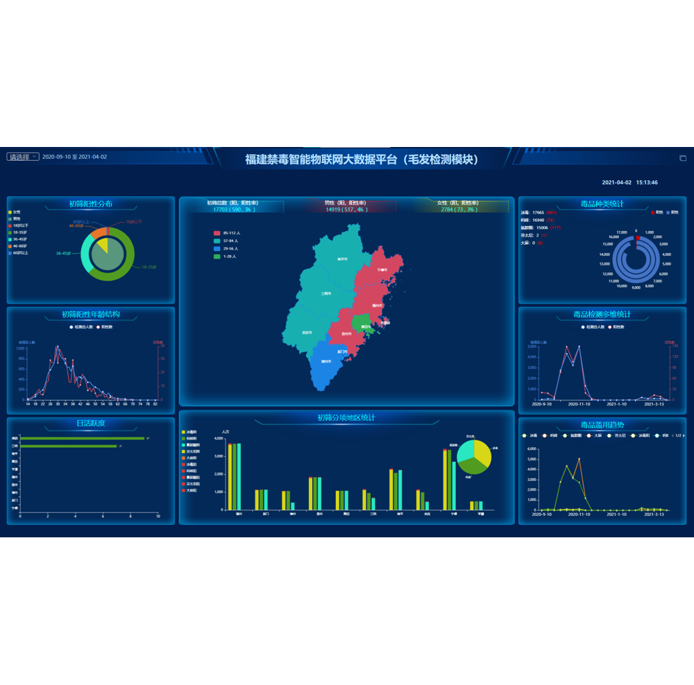 l 掌控全局:综合吸毒人员检测数据,环境污水毒情监测数据以及易制毒化学品监管数据进行多维度大数据分析,全局掌握禁毒情报信息,助力禁毒工作高质量发展。
