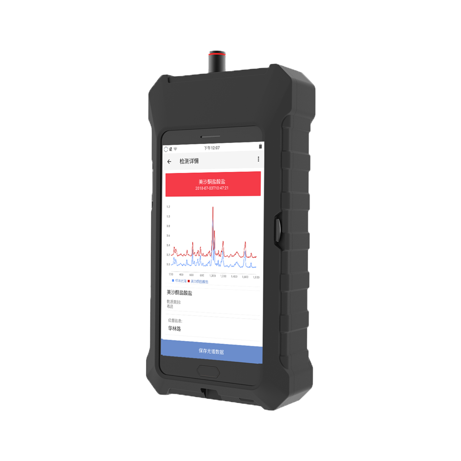 云端手持毒害物质快速分析仪采用1064nm红外激光,能有效避免拉曼测量过程中的荧光干扰,更适合检测海洛因等荧光干扰强的毒品和新型活性物质。设备具有体积小、重量轻、速度快、准确率高、不受环境干扰、可扩展性强等优点,通过深度学习与大数据融合算法实现混合物成分比例快速分析,支持数据库实时在线更新共享,保证了产品智能性的提升和应用场景的大幅扩展。